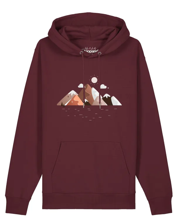 Specificaties: Watapparel Sweatshirt ‘Mountains & Moon’ lichtbruin / bourgogne / wit