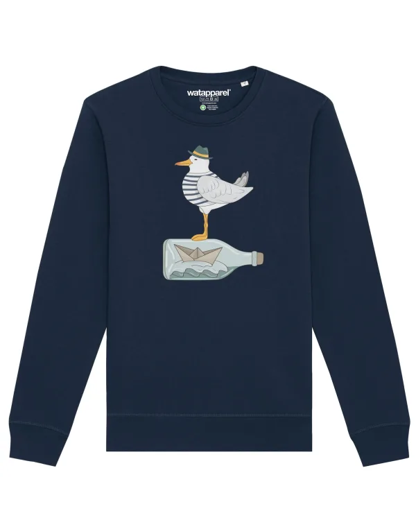 Watapparel Sweatshirt ‘ Möwe mit Hut ‘ navy / wit gemêleerd Prijzen