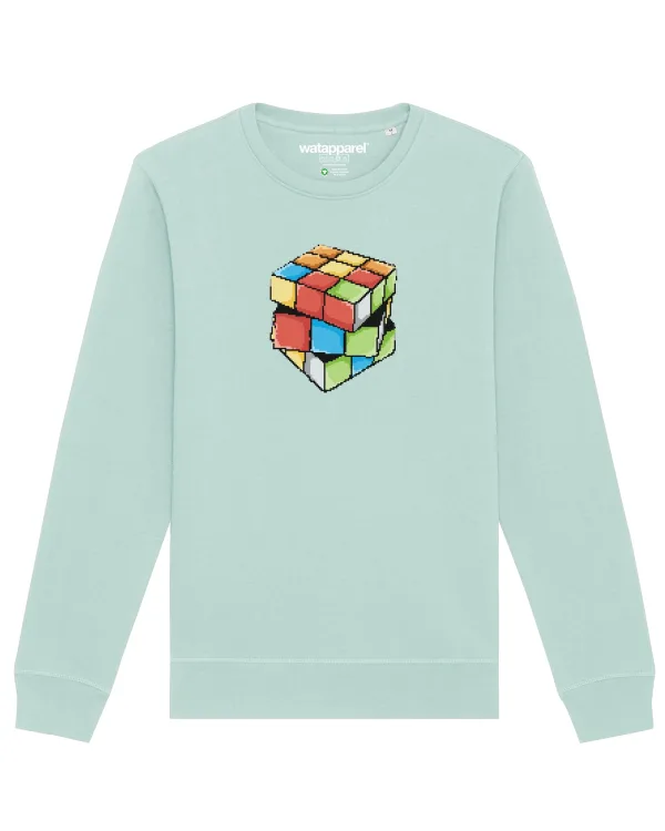 Watapparel Sweatshirt ‘ Pixel Zauberwürfel ‘ azuur / gemengde kleuren