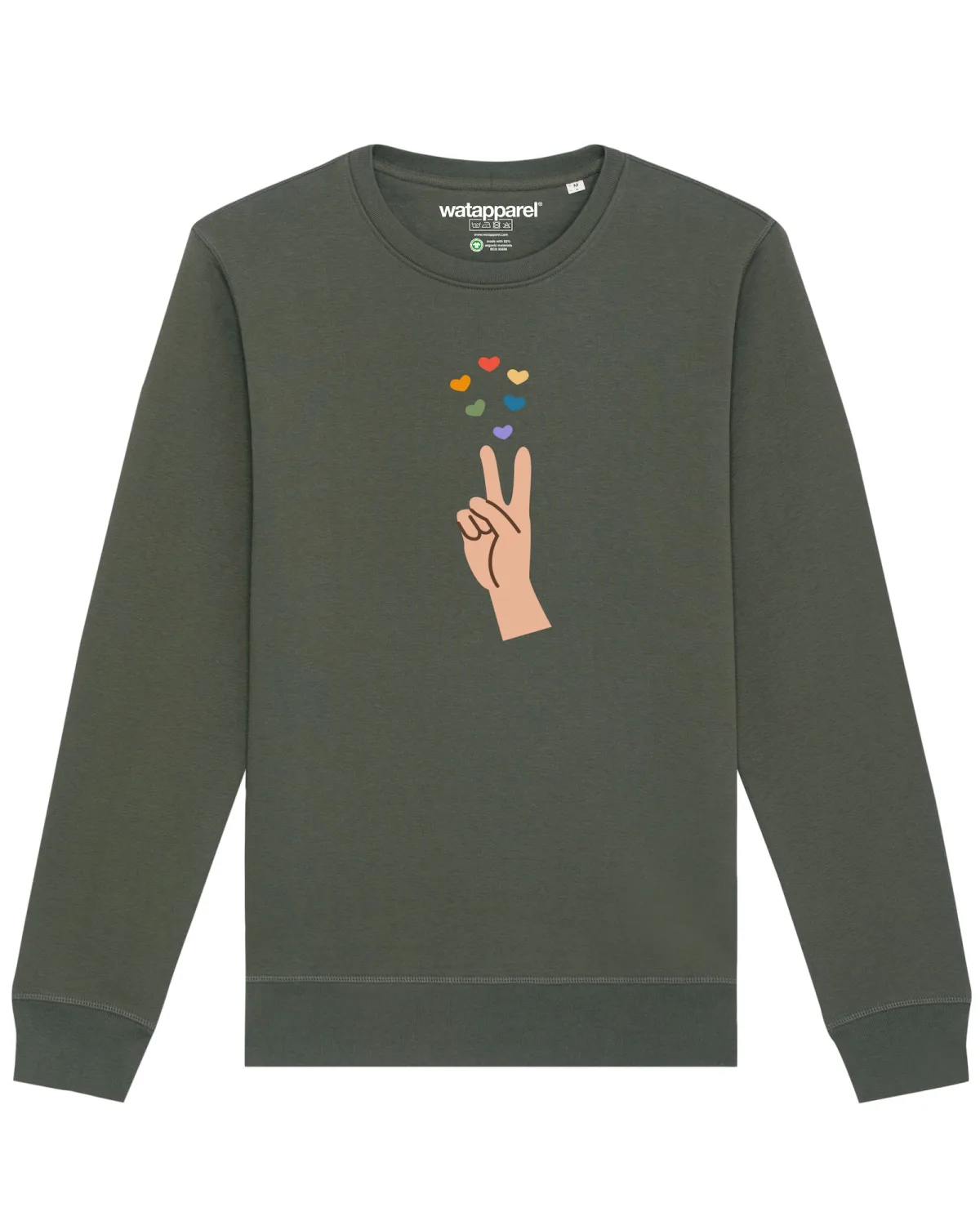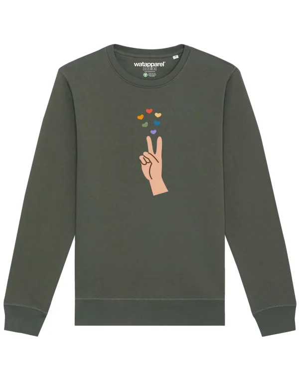 Specificaties: Watapparel Sweatshirt ‘ Spread love ‘ kaki / gemengde kleuren