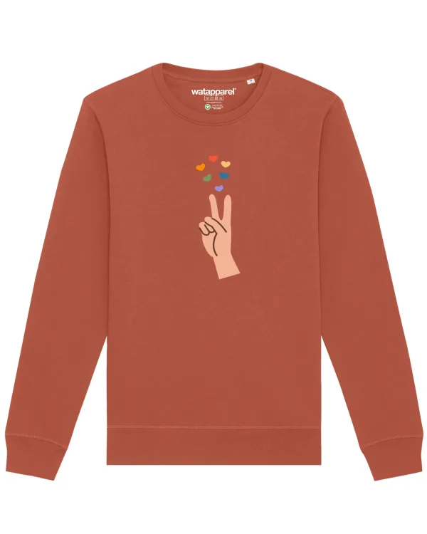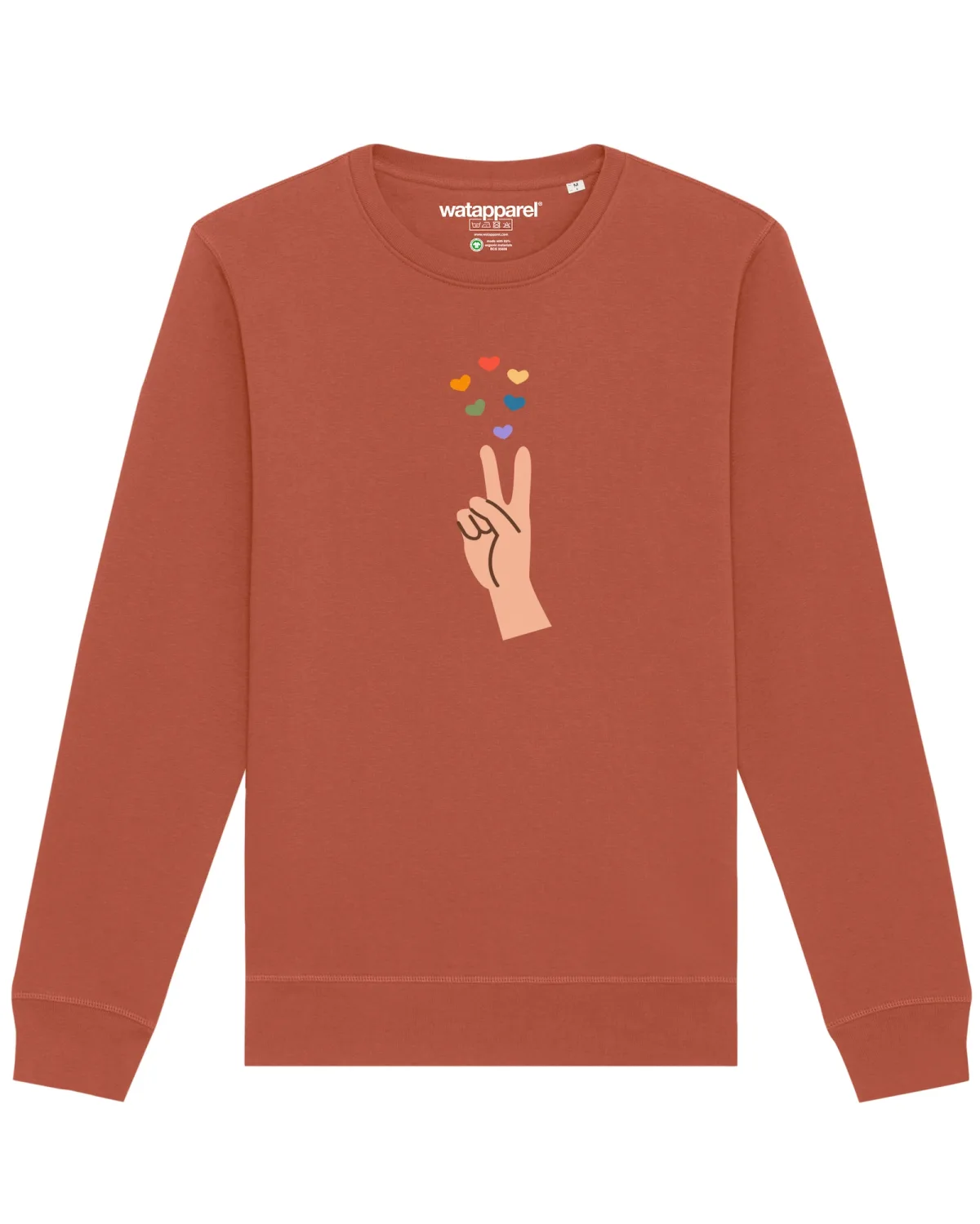 Specificaties: Watapparel Sweatshirt ‘ Spread love ‘ lichtbruin / gemengde kleuren