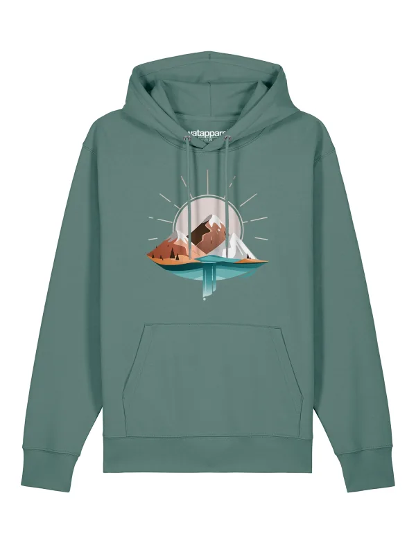 Specificaties: Watapparel Sweatshirt ‘Sunrise & Lake’ blauw / bruin / groen / wit