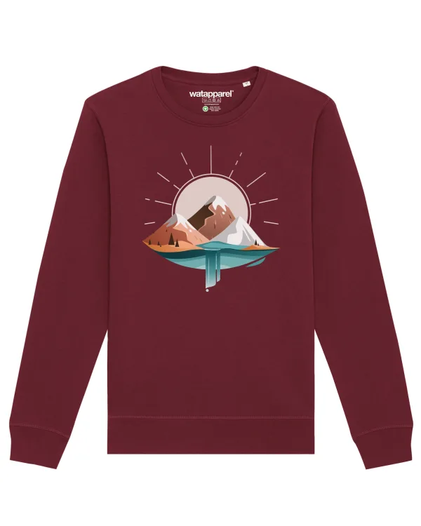 Watapparel Sweatshirt ‘ Sunrise & Lake ‘ gemengde kleuren / bourgogne