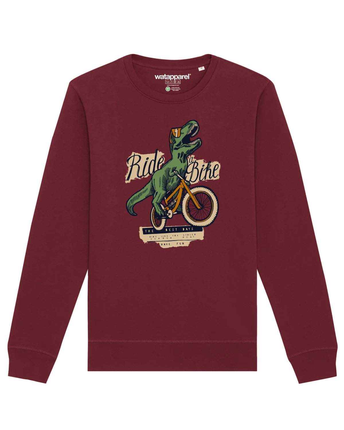 Specificaties: Watapparel Sweatshirt ‘ T-Rex Fahrrad ‘ gemengde kleuren / bourgogne