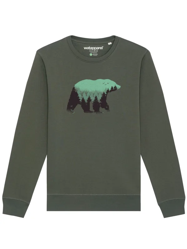 Watapparel Sweatshirt ‘ Waldbär ‘ kaki / neongroen / zwart