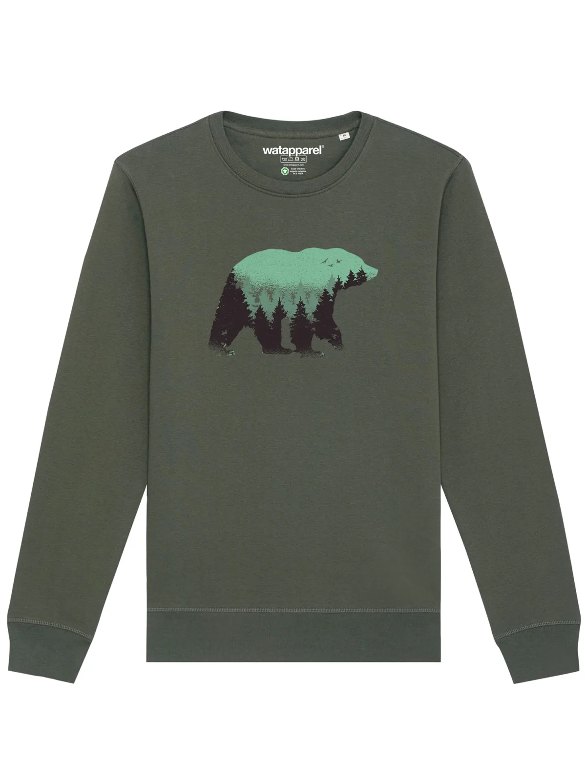 Specificaties: Watapparel Sweatshirt ‘ Waldbär ‘ kaki / neongroen / zwart