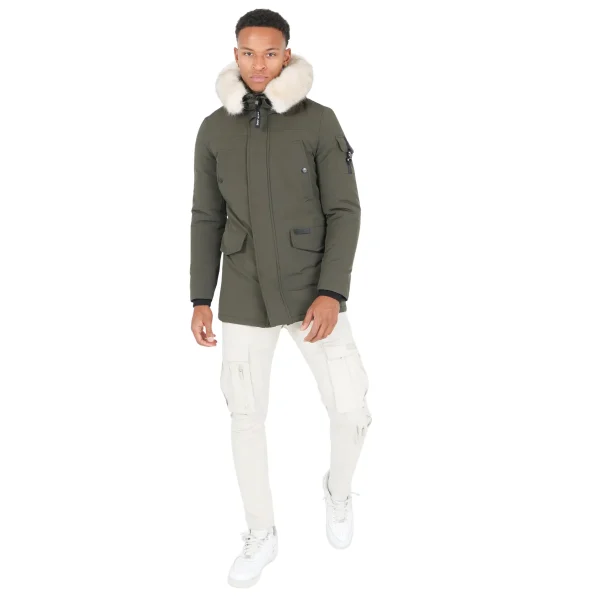 Parka met waterafstotende eigenschappen voor mannen van merk Sixth June.Verstelbare (niet-afneembare) capuchon met afneembare nepbont.Voorkant met knoop- en magneetsluiting, centrale sluiting met ritssluiting en magneet, zak met band op de linkerarm, binnenzak, ribboord aan de mouwen.Samenstelling: polyester (65%) - katoen (35%).Print: nee.Patroon: effen.Sluiting: ritssluiting.Kraag: capuchon.Lengte kledingstuk: lang.Mouwen: lang.Snit: recht.