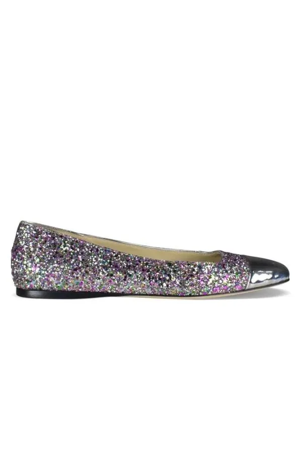 Jimmy Choo WATSON ballerina's van dikke confettikleurige stof met pailletten en zilverkleurig lakleer aan de voorkant.Afgeronde neus.Platte hak.Gemaakt in Italië.