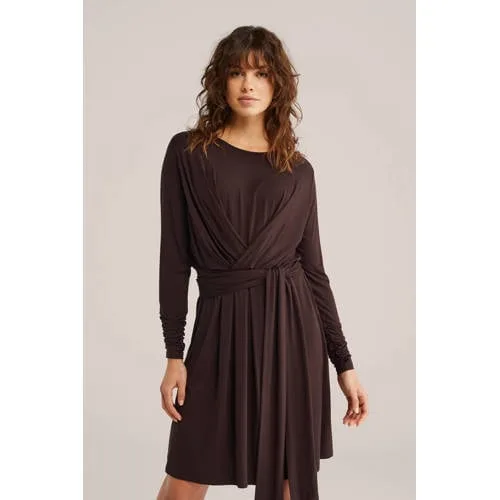 WE Fashion - Dames jersey jurk met strikceintuur - Donkerbruin...