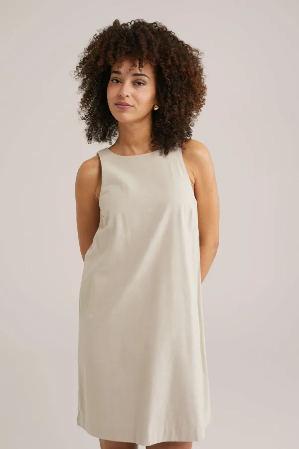 Trek ‘m aan en je bent klaar om te gaan! Deze regular fit jurk is gemaakt van zacht katoen en heeft een tijdloze ronde hals. De neksluiting aan de achterkant geeft een subtiele finishing touch. Perfect voor een thuiswerkdag of borrelavond.