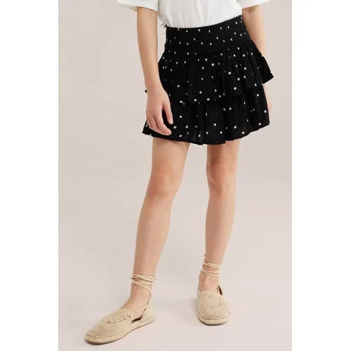 WE Fashion A-lijn rok met stippen zwart