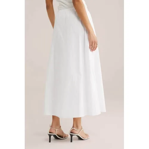 Voor een lichte, zomerse look is deze dames midi rok een fijne basis in je garderobe. De rok heeft een middellange lengte en een elegante A-lijn, waardoor er een mooie, vloeiende vorm ontstaat. De effen witte kleur zorgt voor een frisse uitstraling en laat zich makkelijk combineren met tops, T-shirts en blouses.Comfort en details in één ontwerp Regular fit die soepel langs het lichaam valt zonder strak te zitten Elastische tailleband voor extra draagcomfort en een goede aansluiting in de taille A-lijn model dat voor een vrouwelijke, licht uitlopende vorm zorgt Middellange lengte die rond de kuit valt, passend bij zowel casual als meer geklede outfits Gemaakt van een soepele stof met katoen, nylon en elastaan voor een zachte touch en lichte stretch Praktische zijzakken, handig voor kleine essentials Effen witte kleur die makkelijk te combineren is met zowel neutrale als kleurige itemsVoor dagelijks zomers draaggemakDeze rok komt uit de ‘Daily’ collectie en is geschikt voor alledaags gebruik in de zomer. Combineer met een luchtige top en sandalen voor een relaxte daglook, of met een blouse en nette schoenen voor een meer geklede uitstraling.WE Fashion als vertrouwde basisWE Fashion staat bekend om moderne kleding die goed aansluit bij het dagelijkse leven. De ontwerpen zijn doordacht, met aandacht voor pasvorm en draaggemak. Zo voeg je met deze rok een stijlvol en betrouwbaar item toe aan je kast, waar je seizoen na seizoen plezier van hebt.Een veelzijdige rok die je eenvoudig aanpast aan jouw dag, van werkmoment tot vrije tijd.