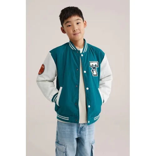 Klaar voor school, buitenspelen en alles ertussenin met dit WE Fashion jongens bomberjack. Het groene baseball jack heeft een regular fit en valt comfortabel over kledinglagen heen. De lange mouwen en de klassieke ronde hals geven het een rustige basis, terwijl de sportieve emblemen op borst en mouw zorgen voor een stoere, speelse uitstraling.Praktische details voor elke dag Baseball stijl: bomberjack ontwerp met sportieve emblemen op borst en mouw Comfortabele pasvorm: regular fit met lange mouwen voor voldoende bewegingsvrijheid Drukknoopsluiting: makkelijk aan en uit, ook voor kleine handen Geribde boorden: elastische boord aan mouwen en onderkant voor een goede aansluiting Handige zakken: twee zakken aan de voorkant voor kleine spullen of warme handen Tussenjas: ideaal voor het voorjaar en frisse dagen in het najaar Kleur: fris groen dat goed te combineren is met jeans, joggers en shortsVan schoolplein tot skateparkDit jack is gemaakt als veelzijdige tussenjas voor buiten. Op de fiets naar school, chillen met vrienden of een middag in het skatepark, de geribde boorden blijven goed zitten en de drukknoopsluiting maak je snel open als het warmer wordt.WE Fashion voor stoere kidsWE Fashion staat bekend om modieuze collecties voor het hele gezin, met aandacht voor pasvorm en draaggemak. De kleding is afgestemd op het dagelijks leven, zodat kinderen vrij kunnen bewegen en ouders kunnen rekenen op degelijke kwaliteit.Een sportief jack dat klaar is voor elke doordeweekse dag.