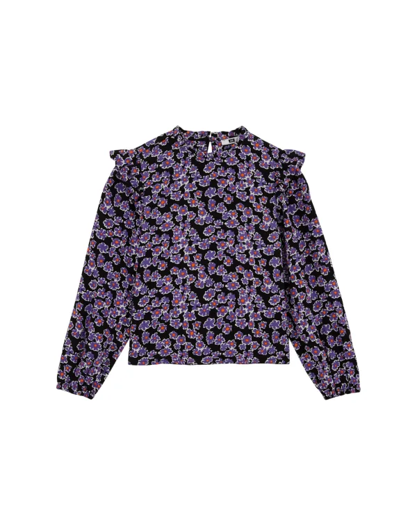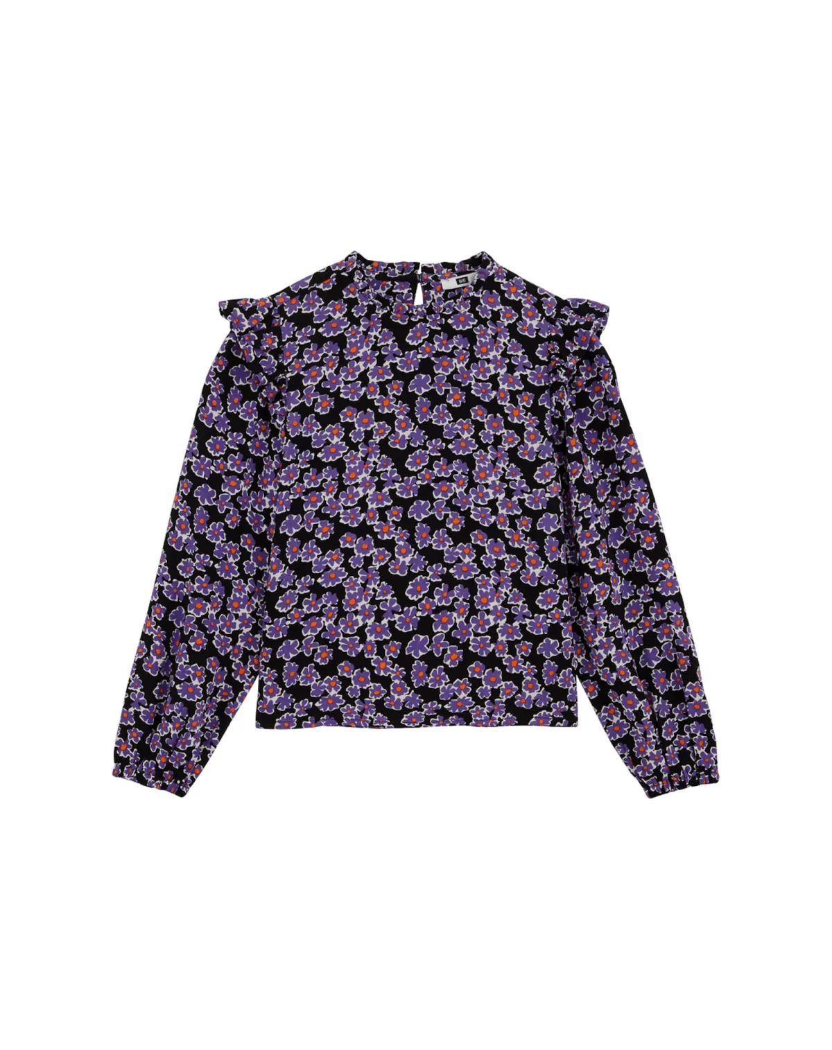 Design: Keyholesluiting; Type sluiting: Knoopsluiting; Materiaal: Viscose; Motief: Bloemenprint; Kraag: Opstaande kraag; Details: Cut-outs, Ruches, Volant, Gedrapeerd; Extra's: All-over patroon; Pasvorm: Normale pasvorm; Armlengte: Lange mouw; Lengte: Normale lengte