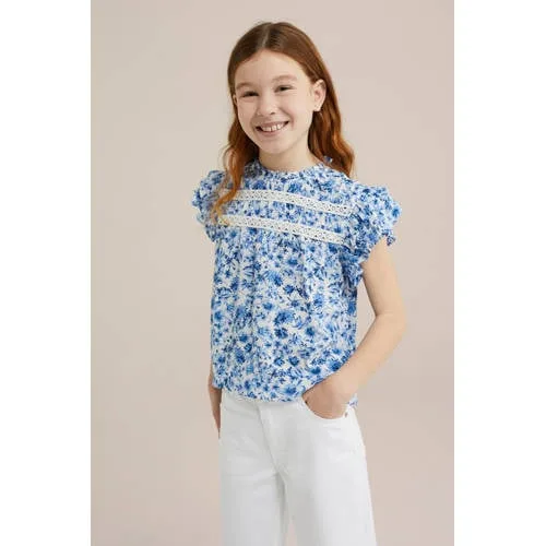 - De laagste prijs van WE Fashion - Meisjes blouse met print - Regular fit - IJsblauw - LENZING ECOVERO viscose - werd gevonden op 26 april 2026 01:56.