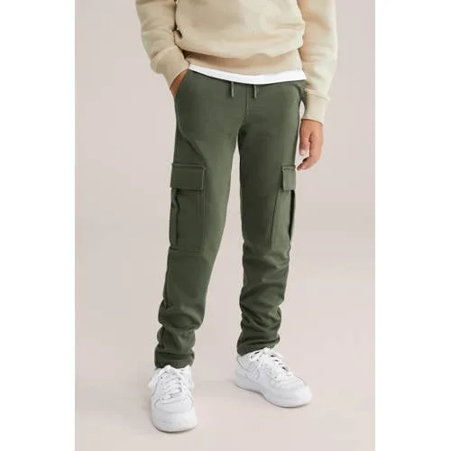 WE Fashion Blue Ridge slim fit cargobroek donkergroen Prijzen