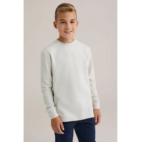 Deze sweater van WE Fashion heeft lange mouwen en een ronde hals. De sweater is gemaakt van 100% katoen. Geribde boorden zorgen voor een mooie afwerking, de textuur voelt zacht aan.