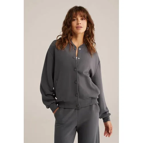 WE Fashion Dames bomberjack van sweatstof Regular fit Donkergrijs Viscose