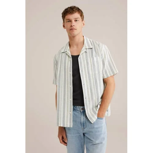Netjes, maar niet braaf. Dit overhemd heeft een regular fit, een klassiek kraagje, knoopsluiting, borstzak en een grafisch dessin. Het sierlusje bij de kraag maakt ‘m nét even anders. Maakt zelfs je simpelste outfit in één keer interessanter.
