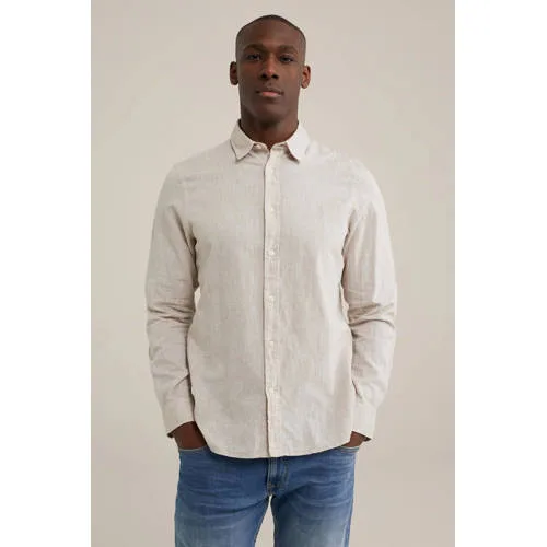 Dit regular fit overhemd voor heren van WE Fashion is gemaakt van linnen en katoen. Het model heeft een klassieke kraag en lange mouwen. Het overhemd heeft een knoopsluiting.