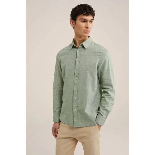 Dit regular fit overhemd voor heren van WE Fashion is gemaakt van linnen en katoen. Het model heeft een klassieke kraag en lange mouwen. Het overhemd heeft een knoopsluiting.