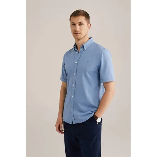 Dit overhemd van WE Fashion heeft een slim fit en korte mouwen. De button down kraag en knoopsluiting maken het compleet, gemaakt van katoen en polyester. Draag dit overhemd makkelijk op een jeans of chino.