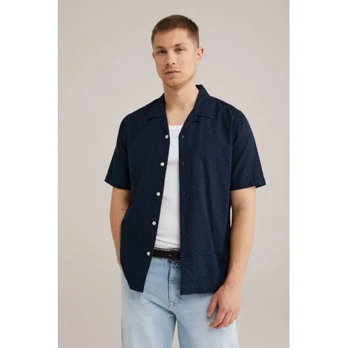 WE Fashion casual overhemd met textuur donkerblauw
