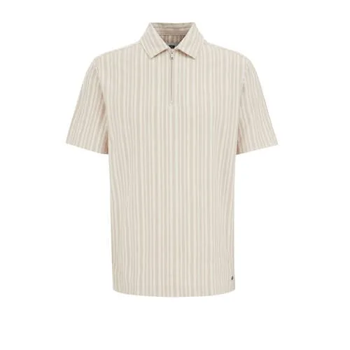 Met dit item sla je simpelweg nooit de plank mis. Deze regular fit polo heeft een halve ritssluiting en een subtiele streepstructuur. De polokraag en korte mouwen zorgen ervoor dat je moeiteloos van werkmodus naar borrelstand schakelt.