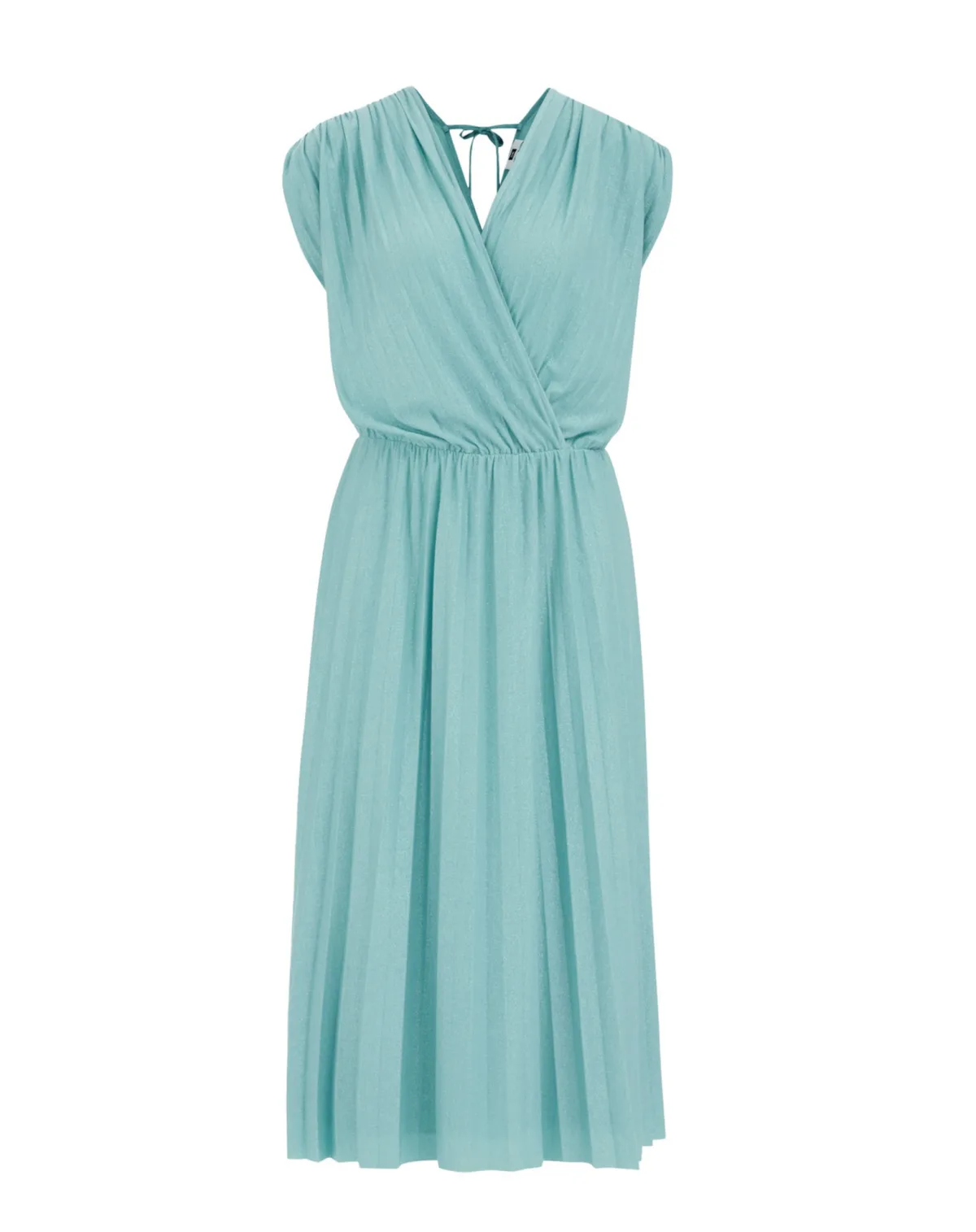 Design: Wikkel-look, Om te knopen/binden; Materiaal: Viscose; Halstype: V-hals; Motief: Effen; Soort bandjes: Brede bandjes; Details: Gedrapeerd, Plissé; Extra’s: Glitterend; Lengte: 3/4 lengte; Snit: Getailleerd; Pasvorm: Normale pasvorm; Armlengte: Mouwloos