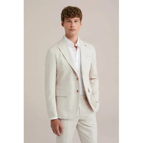 Onmisbaar in je (zomer)garderobe. Deze slim fit blazer combineert stijl met de lichtheid van natuurlijk linnen. Met lange mouwen, twee klepzakken, een borstzak en twee binnenzakken is het een veelzijdige keuze voor elke gelegenheid.