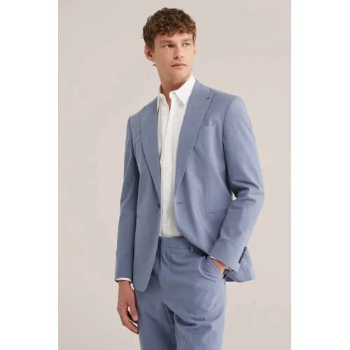 WE Fashion colbert met linnen blauw