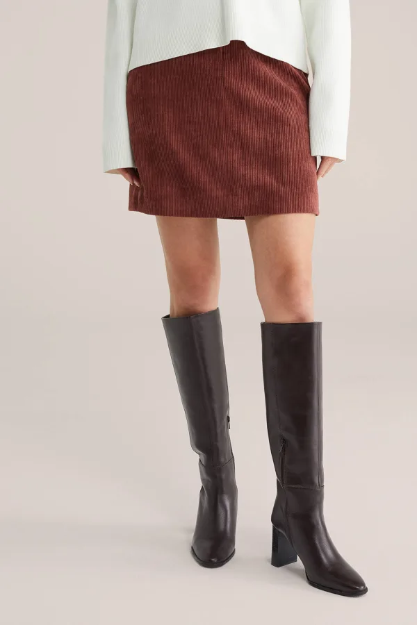 Deze rok van WE Fashion is gemaakt van corduroy. De rok heeft een korte lengte en een rits, haak- en knoopsluiting. Met riemlussen draag je makkelijk je eigen riem.