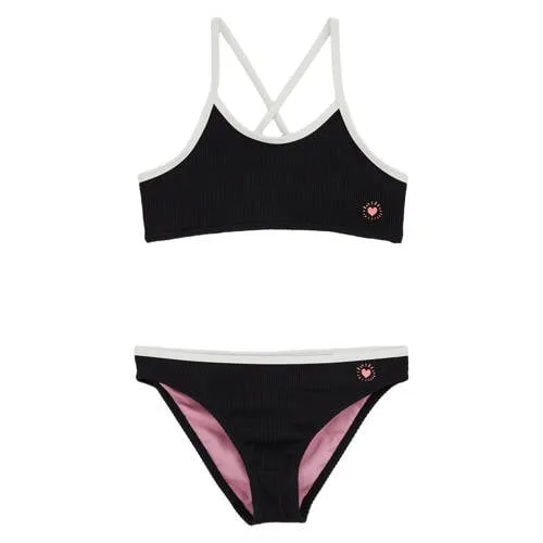 Deze WE Fashion bikini voor meisjes is een praktische basis voor zonnige dagen aan strand of zwembad. De set bestaat uit een crop top en een klassiek bikinislipje, allebei in een regular fit. De ribbel structuur geeft een speels reliëf en voelt zacht aan op de huid. Op zowel het topje als het broekje zit links voor een kleine hartjesprint, een subtiel detail dat de bikini een herkenbare uitstraling geeft.Details die het verschil maken Set van crop top en bikinislip, op elkaar afgestemd voor een rustig geheel Regular fit voor een comfortabele pasvorm bij actief spelen en zwemmen Dunne schouderbandjes die kruislings over de rug lopen voor een sportieve look Niet verstelbare bandjes, wat zorgt voor een strakke en eenvoudige afwerking Ribbel structuur in de stof voor extra textuur en een moderne uitstraling Kleine hartjesprint links op zowel top als broekje als speels detailGeschikt voor zwemles, vakantie en speelmomentenDeze bikini is prettig voor verschillende momenten, van zwemles tot een lange dag aan het water. De crop top biedt iets meer bedekking dan een klassieke triangel en blijft goed zitten bij bewegen en spelen. Het bikinibroekje heeft een vertrouwde slipvorm die netjes aansluit.WE Fashion, vertrouwd voor elke dagWE Fashion staat bekend om moderne collecties voor het hele gezin met aandacht voor pasvorm en draaggemak. De kindercollecties sluiten aan op de stijl van nu, maar blijven praktisch in het dagelijks gebruik. Zo combineert dit merk eigentijdse ontwerpen met materialen en details die geschikt zijn voor actief gebruik.Een praktische bikini die klaar is voor alle waterpretmomenten van jouw kind.