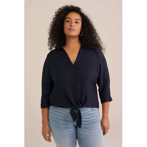 WE Fashion Curve blouse donkerblauw
