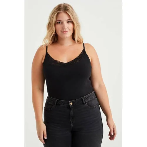 | Prijsgeschiedenis voor WE Fashion Dames singlet met kant Curve Zwart Katoen Plus Size | |