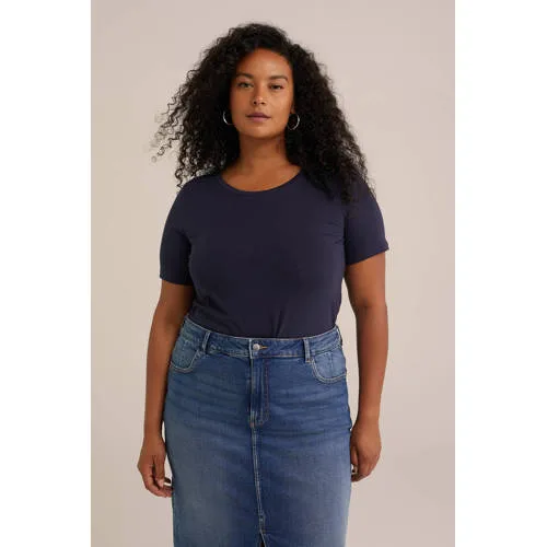 WE Fashion Curve T-shirt donkerblauw Prijzen