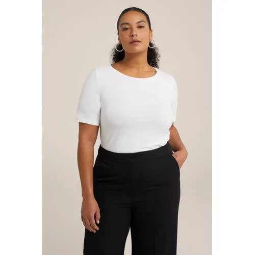 Stralend comfort, altijd paraat. Dit nauwsluitende T-shirt van zachte katoenmix omarmt je vorm met een ronde hals en korte mouwen.