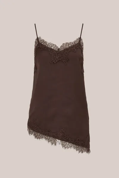 - Bij wefashion.com kun je WE Fashion - Dames asymmetrisch singlet met kant - Regular fit - Donkerbruin - kopen voor slechts €35,00