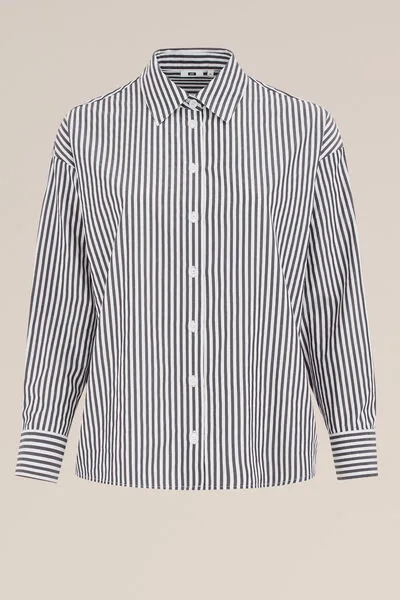Blijf op je strepen staan zonder ook maar een vinger uit te steken. Deze boxy fit blouse van katoenmix heeft een gestreepte print, lange mouwen en een knoopsluiting.