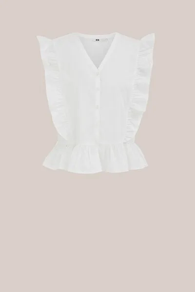 WE Fashion – Dames blouse met ruches – Regular fit – Wit – Katoen – Prijzen