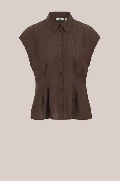 WE Fashion – Dames blouse met structuur – Regular fit – Bruin – Viscose – Prijzen