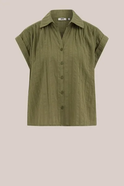 WE Fashion – Dames blouse met structuur – Regular fit – Olijfgroen – Katoen –