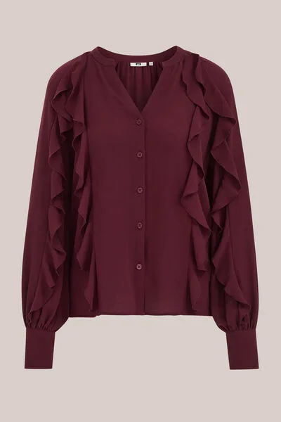 WE Fashion – Dames blouse met volants – Regular fit – Bordeauxrood –