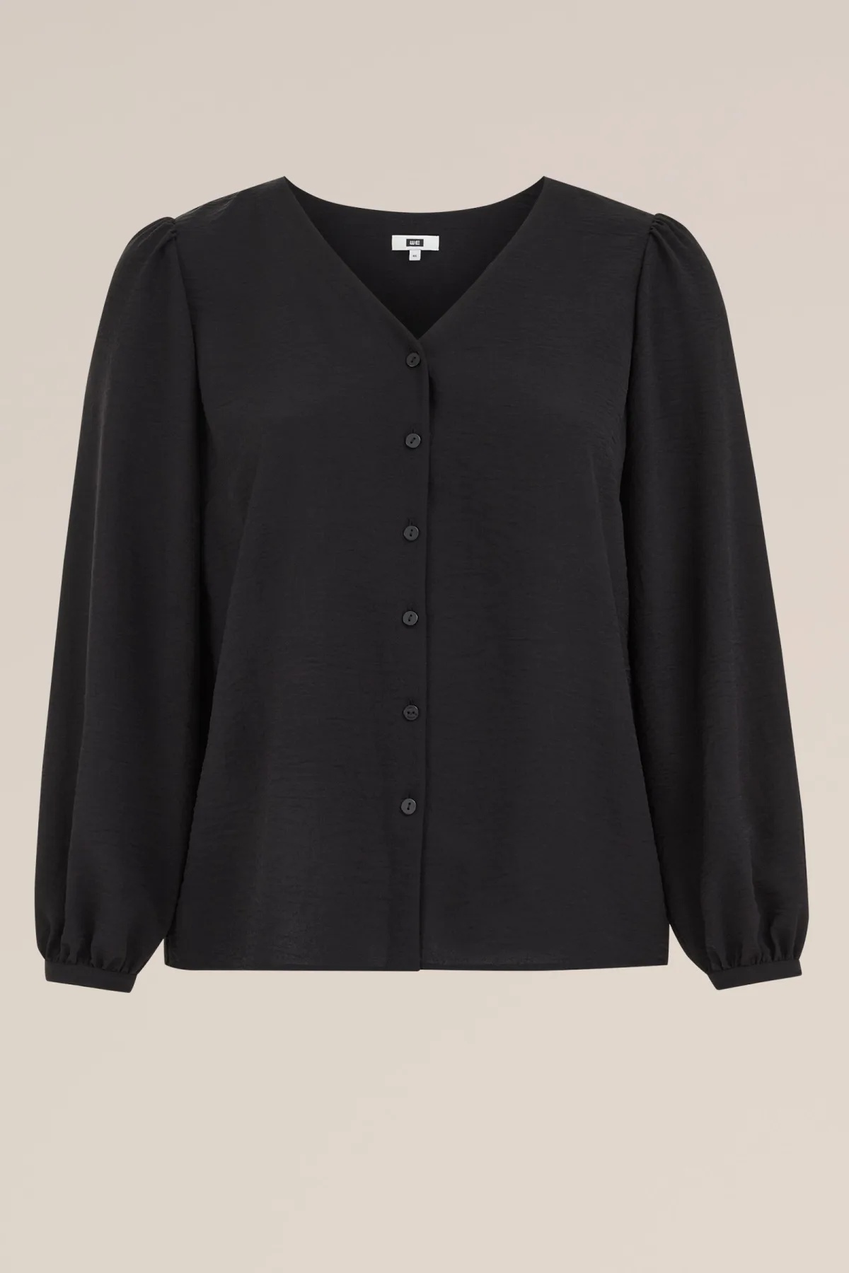 Geef je garderobe en je outfits een update. Deze blouse heeft een V-hals, lange mouwen en een knoopsluiting. Het item is makkelijk te combineren en moeiteloos stijlvol. Van kantoor tot koffiedate: de blouse is altijd een goed idee.