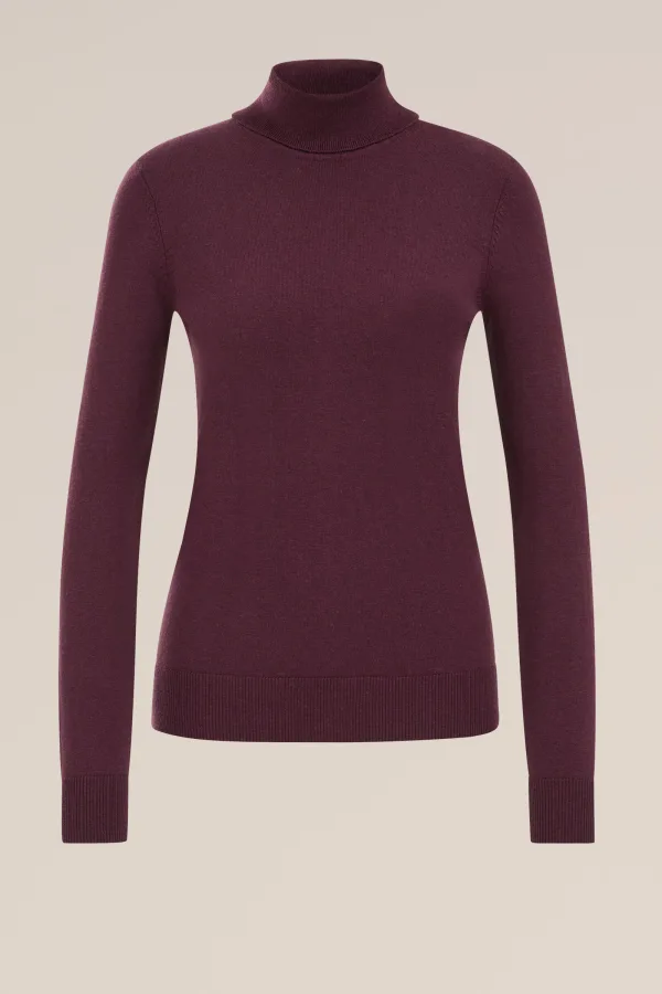 WE Fashion Dames fijngebreide coltrui Regular fit Donkerrood Katoen