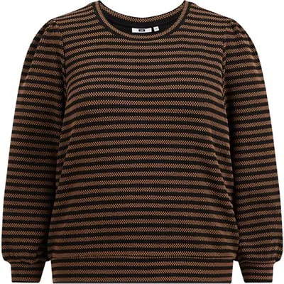 We Fashion Dames Gestreepte Sweater Met Structuur – Curve Cinnamon Brow