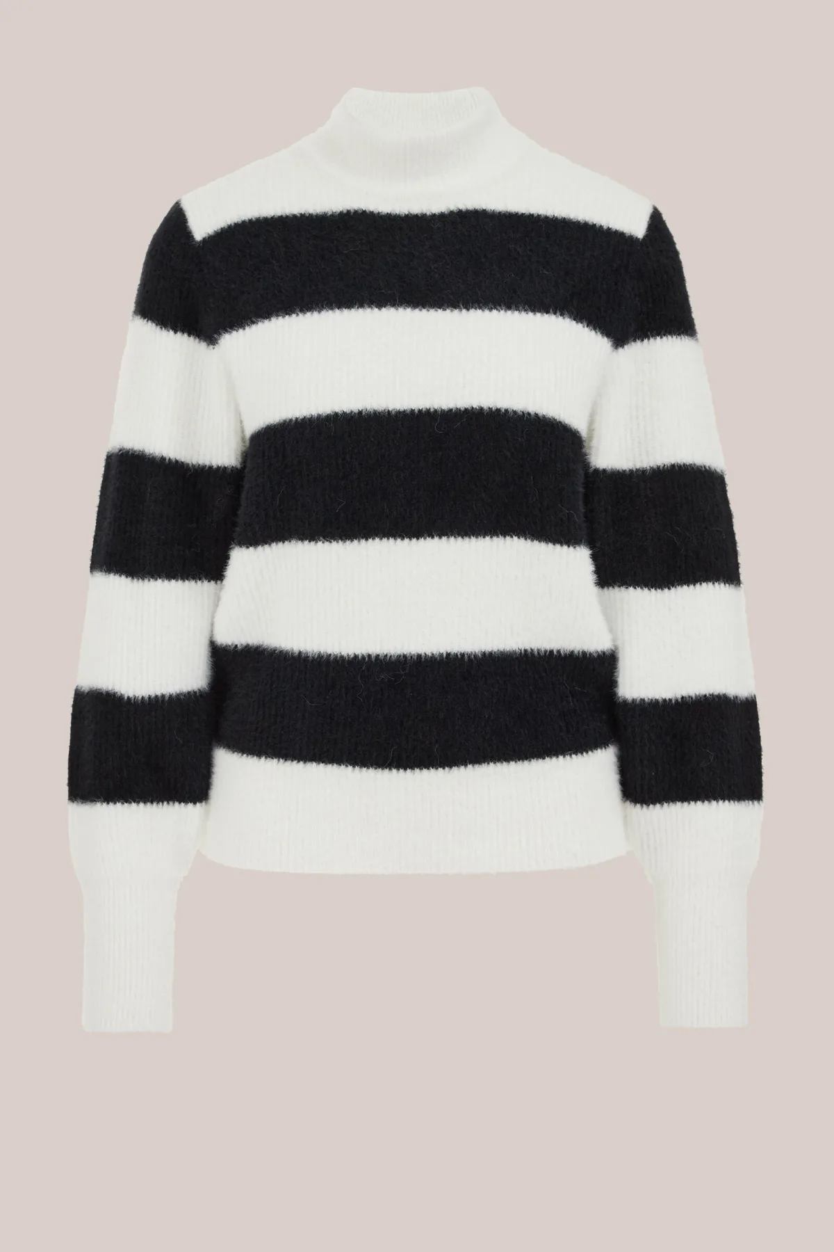 Design: Geribbelde kraag, Rechte zoom, Geribd ceintuurtje; Materiaal: Knitwear; Halstype: Opstaande kraag; Motief: Gestreept; Extra's: All-over patroon, Voelt zacht aan; Pasvorm: Normale pasvorm; Armlengte: Lange mouw; Lengte: Normale lengte