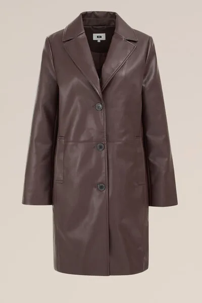 De perfecte laatste laag. Deze jas van imitatieleer heeft een nauwsluitende fit, een kraag en een knoopsluiting. Met twee steekzakken én een handige binnenzak is dit item niet alleen stijlvol, maar ook praktisch.
