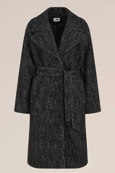 Zacht vanbinnen, stijlvol vanbuiten. Deze wolmix jas met regular fit, elegante kraag en knoopsluiting heeft een zigzagstructuur en een ceintuur die je taille flatteert.