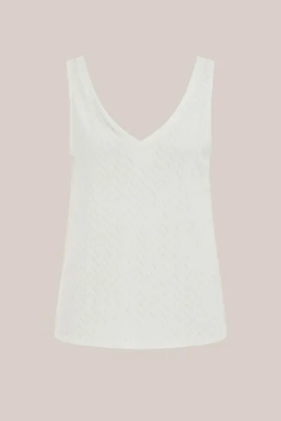 WE Fashion – Dames jersey singlet met open structuur – Regular fit – Gebroken wit – Prijzen